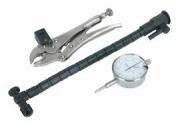Brake Disc Run-Out Kit • Check for wear and brake disc run-out quickly and easily. • Locking pliers secure to any convenient position, enabling DTI gauge to be placed against brake disc. • Kit includes Metric calibrated DTI gauge. Deflection/Travel: 10mm Graduation: 0.01mm Shank size: 8mm